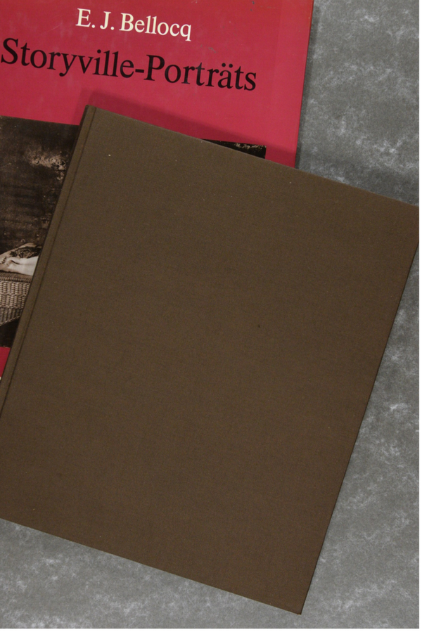 An elegant production by Joseph Bourke Del Valle. Brown linen cloth boards with titles embossed on spine. Photographs by E. J. Bellocq. Preface by Lee Friedlander. Interviews by John Szarkowski. Reproduced from prints made by Lee Friedlander and printed on thick coated stock paper by The Meridien Gravure Company in Connecticut. German edition.